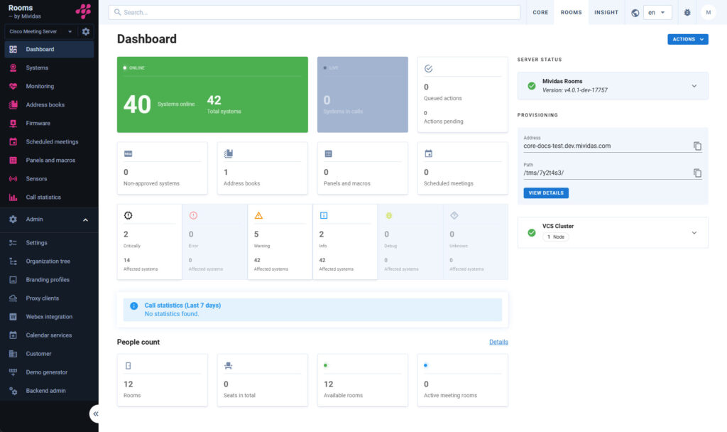 Since its launch in 2019, Mividas Rooms has become a trusted, feature-rich alternative to Cisco TMS. We’ve kept the familiar functionality users expect from Cisco TMS while introducing powerful new tools that simplify management, provisioning, and monitoring of Cisco room systems.